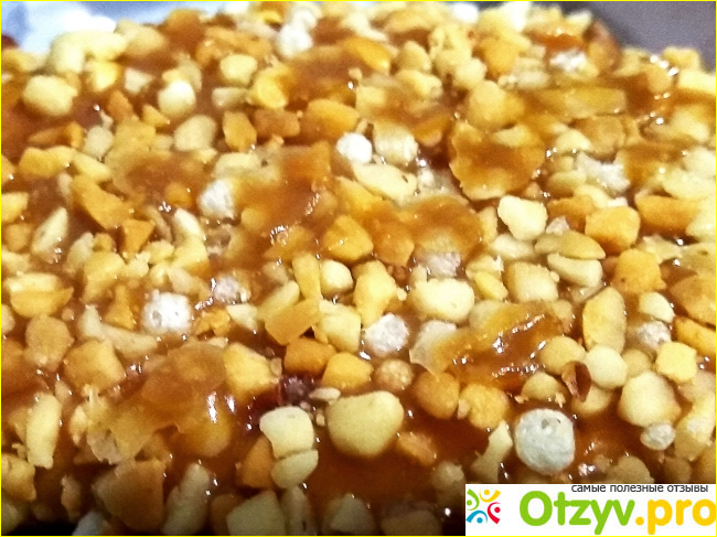 Поверху дробленый арахис, который и придает заманивающий вид изделию. Он же и создает ту самую неповторимую текстуру, вызывающую аппетит. Смешной аппетитный ежик, - вот кого мне напоминает эта фаралделлка.