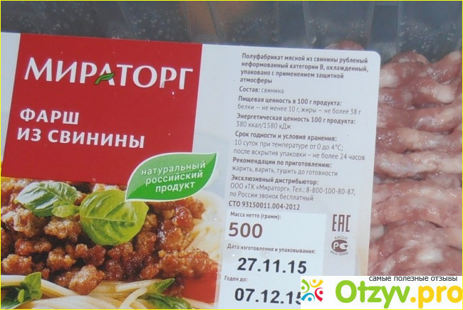 Этот фарш идет под категорией В, мне это ничего не говорит, но в любом случае фарш хороший. Состоит только из свинины, без соли и специй.
