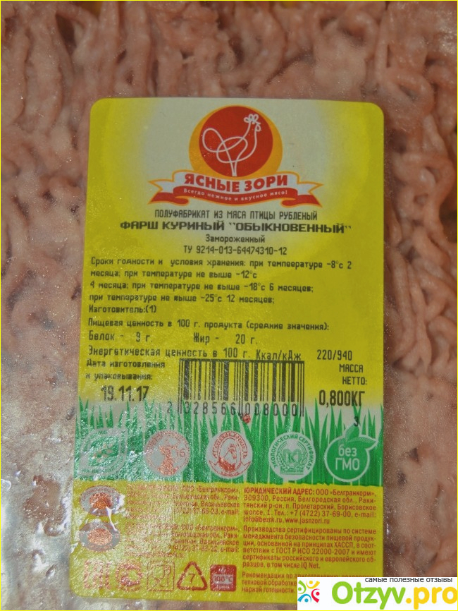 Но женщина-продавец этот фарш ему очень расхваливала. Производство ООО «Белгранкорм». Это, как можно догадаться, предприятие должно располагаться в Белгородской области. Правда слово «корм» в названии немного странно воспринимается.