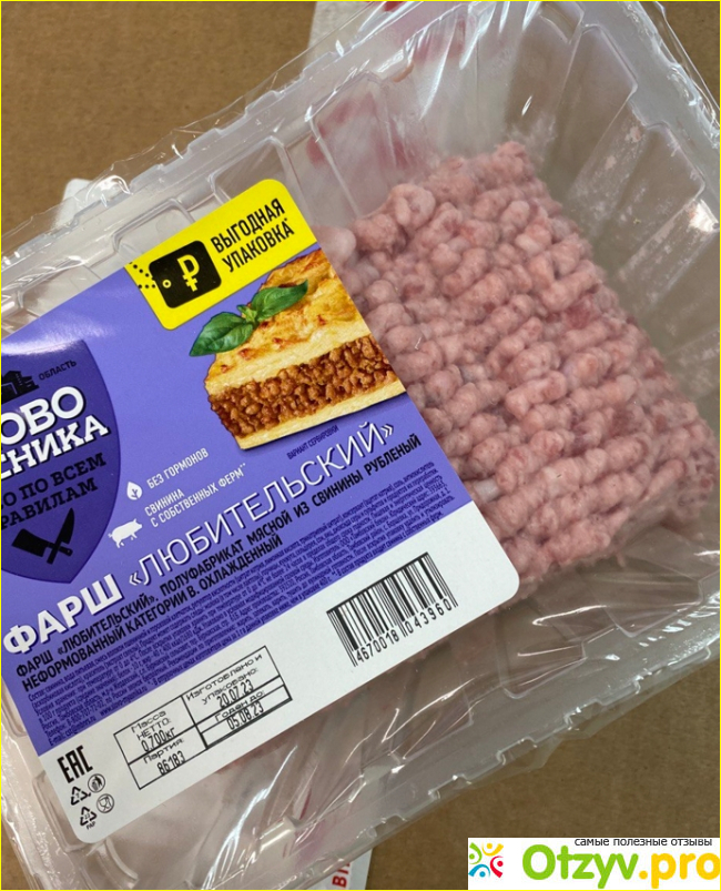 Мне нравится, что в составе натуральная свинина и нет ничего лишнего. Он вообще не жирный и в размерах сильно не ужаривается. Для приготовления котлет я обычно покупаю 2 лотка общим весом около килограмма. После вскрытия лотка постороннего запаха не чувствуется. Фарш выглядит аккуратно, он хорошо сформирован, имеет рубленную консистенцию. Это не какая-то непонятная каша из мяса, а просто хорошо перекрученный на мясорубке фарш. Его можно смешать с любимыми специями, добавить яйцо и сформировать классные и вкусные котлеты. Формируются они легко, не разваливаются и не пригорают. Обычно я обжариваю его до золотистой корочки. При раскусывании чувствуется натуральный вкус аппетитной и ароматной свинины. Он довольно сочный и нежный, а ещё он хорошо подходит для приготовления тефтелей, фрикаделек и даже лазаньи. Отличный свиной фарш на каждый день. В плане цены доступный, поэтому беру часто и не жалею.