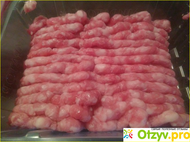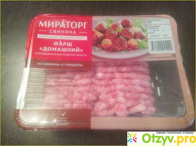 Последний раз купила лоток весом 500 грамм примерно за 130 рублей, при том, что фарш из говядины у нас стоит от 340 и выше за кг.