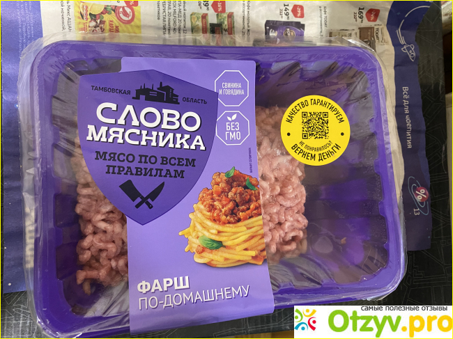Поэтому, я искала готовый фарш для приготовления домашних блюд. И в один из дней я наткнулась на фарш по-домашнему Слово Мясника. Надо признать, мне очень понравилось название, и я взяла один пластиковый лоток.