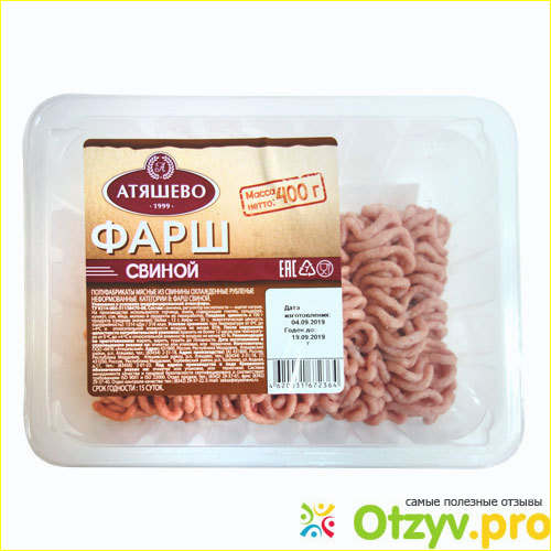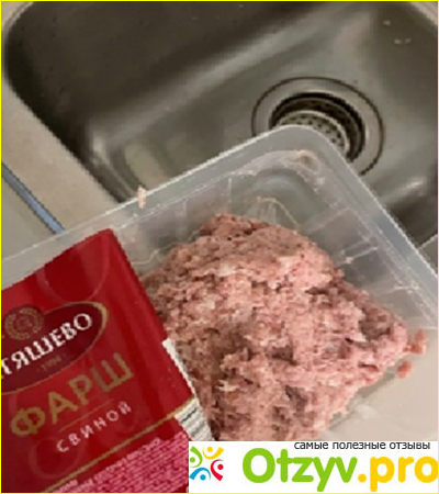 Поэтому как правило беру свинину и сама ее прокручиваю через мясорубку. Из готовых фаршей от Атяшево мне понравился. Покупаю сразу несколько пачек, что пока не нужно замораживаю. Порублен не крупно и не мелко, есть своя текстура. На фото фарш после разморозки, как видите подразмяк, но на выходе вкус тот же, как если бы готовила из охлажденного.