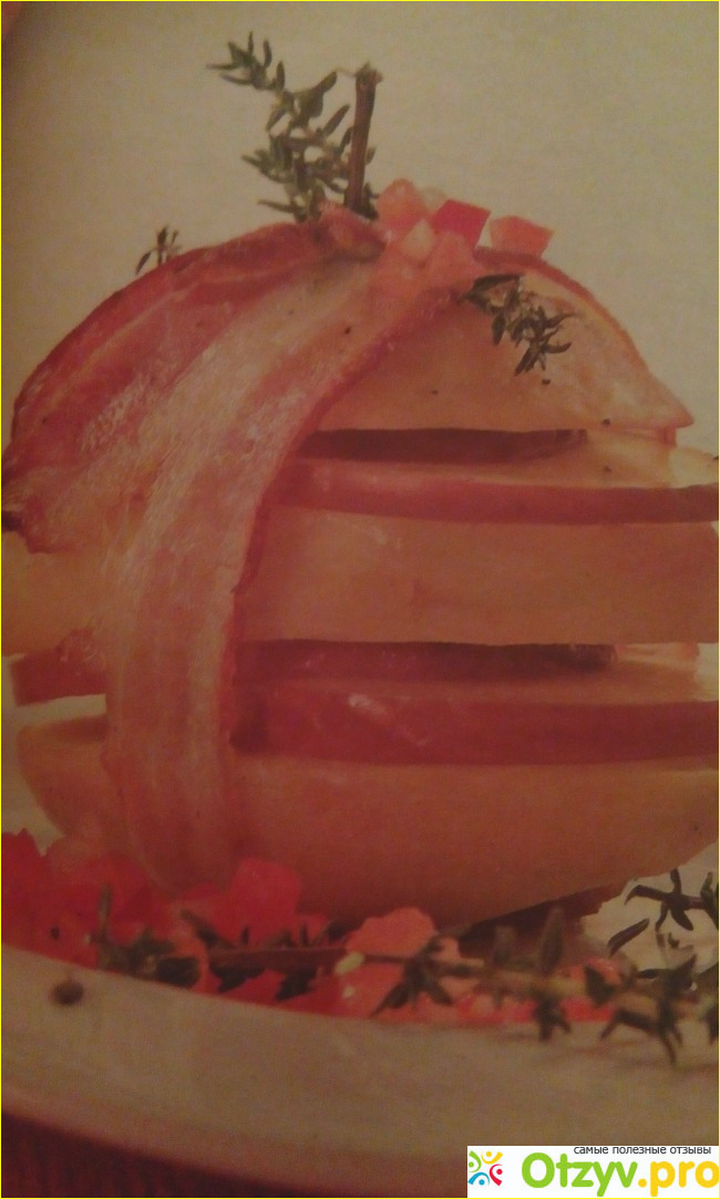 2) на первый ломтик картофеля выложить по два ломтика сыра и листки тимьяна, накрыть вторым ломтиком картофеля. Сверху вновь положить два ломтика сыра и Тимьян, накрыть третьим ломтиком картофеля. Посолить и обильно поперчить