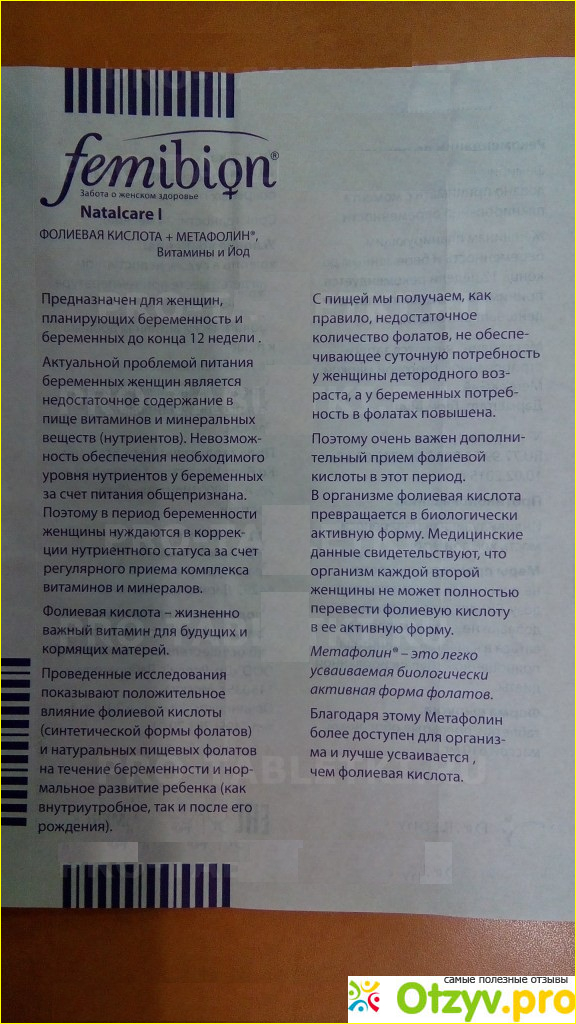 Но лично я об этом в самом начале совсем не беспокоилась, меня больше волновало здоровье будущего малыша. Потому я решила почитать советы для будущих мам, где узнала, что в этот период женщине полезно пить фолиевую кислоту. И будучи на приеме у гинеколога решила поинтересоваться, что она мне может посоветовать на основе фолиевой кислоты. Тогда-то мне и посоветовали комплекс витаминов «Femibion Natalcare I».