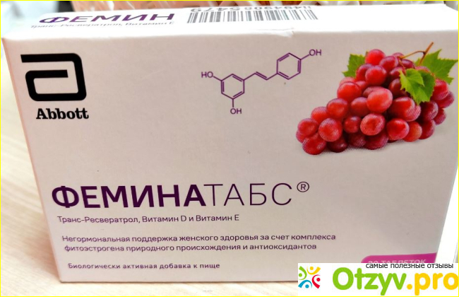 Феминатабс представляет собой активную добавку, которая была разработана специально для женщин, когда у них возникает период менопаузы и сопровождается рядом неприятных симптомов. Данная добавка является отличным источником ресвератрола, витаминов Е и Д. Создана добавка по особой технологии, поэтому таблетки не просто проглатываются, а рассасываются (клады под язык) и дальше они всасываются в ротовой полости. Благодаря именно такому приему сохраняется максимальная польза всех компонентов и они обеспечивают нужный эффект.