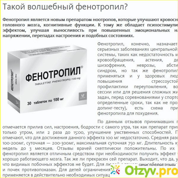 Фенотропил мне выписали совсем не для похудения (я вешу 46 кг), а для стимуляции мозгового кровообращения, при стрессе и напряженной работе это хороший ноотроп. Я пропила его недели две, когда стала замечать, что у меня пропал аппетит. Ну, просто взял и пропал.