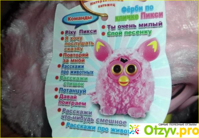На специальном вкладыше есть ряд команд, на которые реагирует пушистик. Они должны быть только те, которые написаны и заложены в программе, на другие он не ответит. Его можно попросить послушать сказку, или спеть песенку, он забавно танцует, с ним можно поиграть. Он рассказывает много, но только заложенный в него текст.