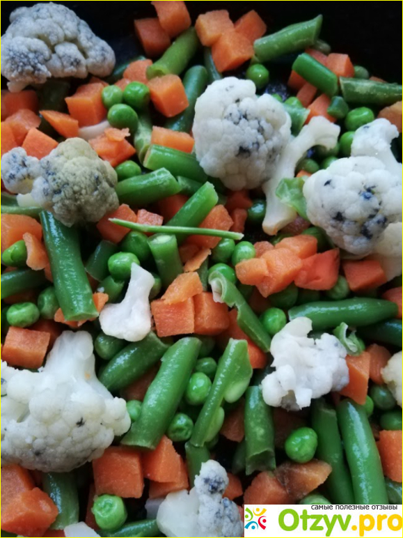 И вижу такую вот «красоту». Резаная фасоль, морковка, зеленый горошек и цветная капуста с черными пятнами. Гнилая? Как так? Странный запах. Сколько раньше покупала заморозок – у них совсем другой аромат! Видимо, производитель не удосужился перебрать овощи. Или они хранились неправильно.