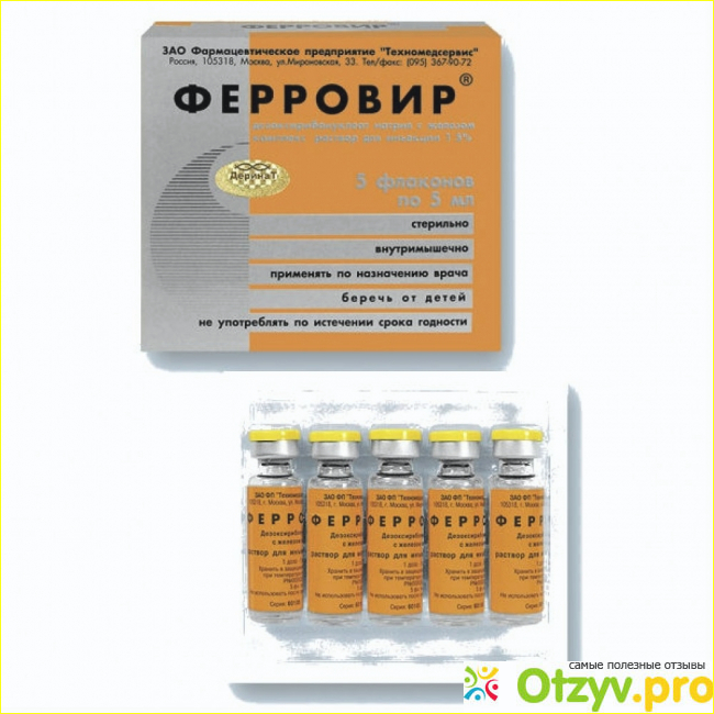Активными веществами здесь являются два компонента: Дезоксирибонуклеат натрия + Железа комплекс. Выпускается препарат в форме раствора по 1 мл желтого оттенка, действующего вещества по 15 мг дезоксирибонуклеата Na, 0.048 мг хлорида окисного Fe. Препарат относится к категории фунгицидных, противовирусных, антимикробных и активатором иммунной системы. Они способны воздействовать на вирусы, которые содержат ДНК и РНК, и проявляют выраженную противовирусную активность. Оказывает яркое характерное выраженное иммуномодулирующее действие. Ферровир способен быть активным по отношению множества видов вирусов, всасывание происходит быстро и распределяется путем транспортного пути по всем тканям и внутренним органам.