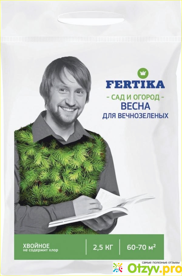 "Фертика хвойное" подходит для вечнозеленых растений. Оно выпускается в двух упаковках для использования в летний и весенний периоды. Удобрение наносится на поверхность почвы, после чего почву рыхлят и растение поливают ежедневно.