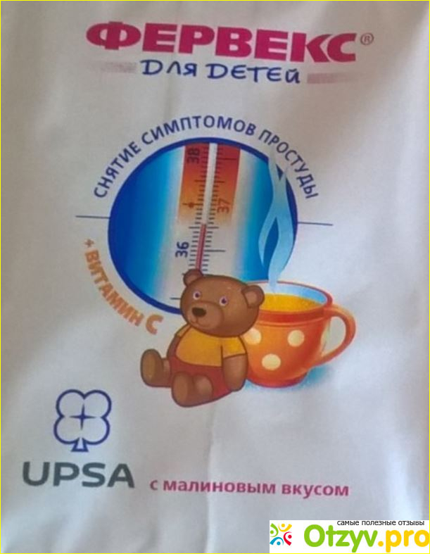 Ничего не предвещало серьезного, и поначалу температура поднималась не сильно. К вечеру уже произошел сильный скачок и нам пришлось применять уже "тяжелую" лекарственную "артиллерию". Пришлось бежать в аптеку, где мне и порекомендовали такой препарат в виде порошка для детей Фервекс.