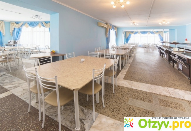 В столовой кормили три раза в день, по системе шведский стол. Да, разносолов не так много (как в Турции, например), но с ребенком самое то. Хорошая детская еда (есть каши (2-3 на выбор), супа (2-3 на выбор), с утра можно было брать и сухи завтраки, молоко, кефир, сметану; салатов большое разнообразие, блины, котлеты, рыба, на гарнир - рис, греча, картофель, пюре ... всего не перечислить. Так же давали и фрукты, выпечку.