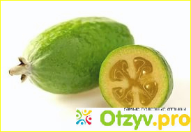 Фейхоа по виду напоминает чем то зеленый грецкий орех. По вкусу напоминает чем то, вкус киви, земляники и ананаса. Вот как выглядит фрукт в разрезе, мякоть с семенами.