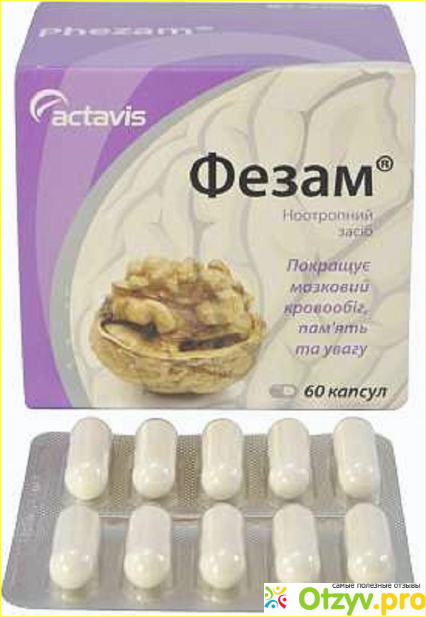 Прежде всего он помогает улучшить мозговое кровообращение, улучшить работу мозга. Фезам оказывает действие на сосуды, очищает их, улучшает работу.