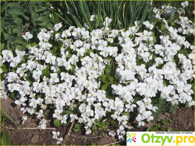 Фиалка садовая белая (есть еще и синяя)-это многолетний садовый цветок, который зацветает ранней весной и радует своим продолжительным цветением почти месяц. Но и после цветения фиалка не теряет своей декоративности, кустики остаются желеными до поздней осени.