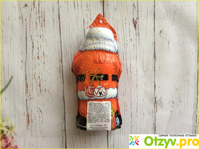 Шоколадный Дед Мороз любим многим детям за форму и вкус удивительного праздника. Как и любая другая продукция этой марки оформление упаковки выдержано в белых и оранжевых цветах. На упаковке присутствует название марки. Вообще оформление очень красочное, моим маленьким племянникам оно очень понравилось.