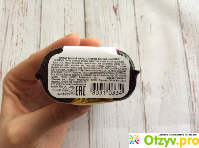 Шоколад немного приторный на мой вкус, но самое главное, что детям нравится. Так шоколадная фигурка стала интересным украшением для ёлки и не забываемой, что естественно для такого десерта. На момент покупки цена такой сладкой фигурки составляла 189 рублей. В больших сетевых магазинах часто бывают скидки. Я рекомендую фигурный молочный шоколад от марки Kinder как вкусный и оригинальный, способный стать настоящим новогодним украшением и радостью для детей.
