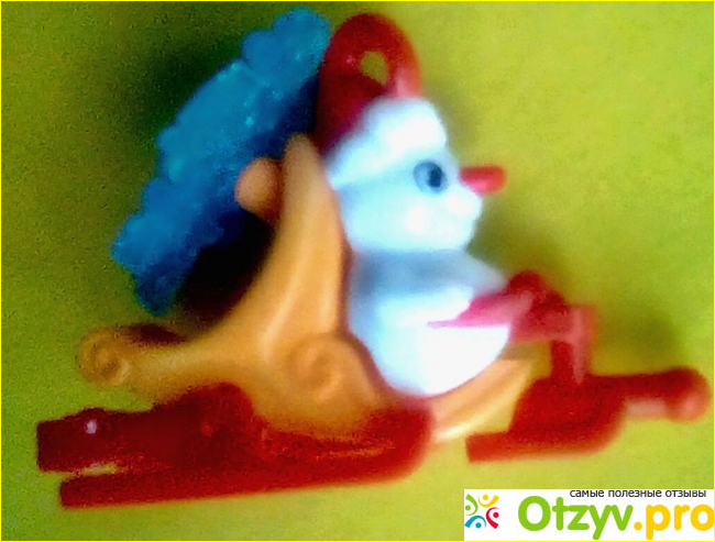 Снежинка сзади крутится. Также можно собирать "паровозик" из нескольких фигурок. У нас пока только две, есть еще Дед Мороз".