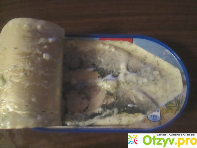 Селедка в довольно редком для наших консервов белом укропном соусе, да еще и с кольцом, которое повышает стоимость.