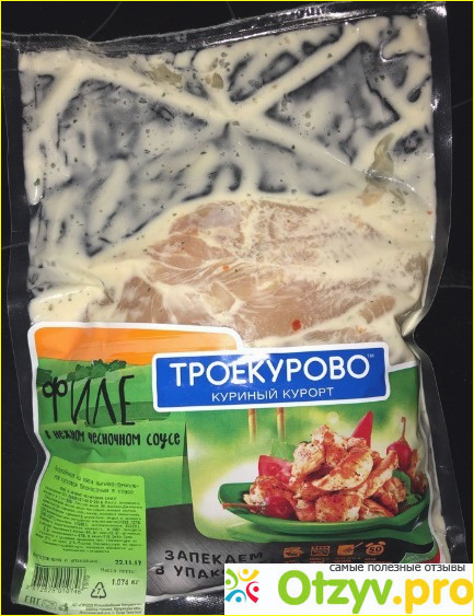 Покупала для мужа, а была готова съесть все сама. Муж у меня любит все с чесноком. Поэтому когда приехала в офис в центре Москвы и увидела в ближайшем магазине филе с чесночный соусом от «Троекурово» сразу взяла.