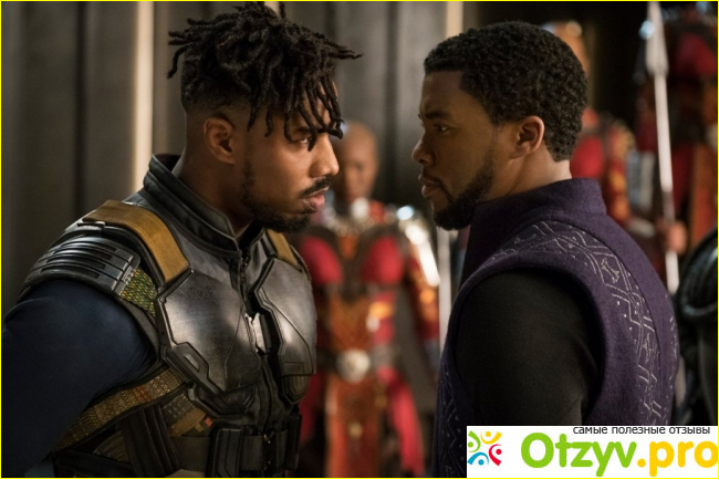 К другим персонажам претензий нет, они все хорошо получились. Например, сестра короля — Шури, весёлая девчонка и гений, в одном лице, она получилась классной. Но золото этого фильма — злодеи. В кой то веки, в фильме Марвел, злодеи запомнились, лучше чем герои. Например, персонаж Майкла Б. Джордана — Эрик Киллмонгер, вот он шикарен. Он берёт своим контрастом: у него нет суперспособностей, он не качок, а наоборот похож на ботаника с дредами, но стоит хоть кому-нибудь столкнуться с ним, и ты пожалеешь, потому что Киллмонгер — безжалостный убийца и псих. При этом у него есть мотивация — он вроде как, болеет за чёрных, с их бедственным положением.