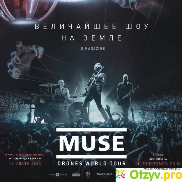Уже не первый раз фильм-концерт великобританской группы Muse будет демонстрироваться в кинотеатрах «Синема парк». В ноябре 2013 года были два сеанса записи концертного шоу под названием Live in Rome (в переводе «Живое выступление в Риме»). В этом году 12 июля прошел показ нового фильма Drones World Tour, записанный в разных городах в рамках мирового турне в поддержку последнего альбома «Дроны». Дополнительный сеанс назначен на 4 августа.