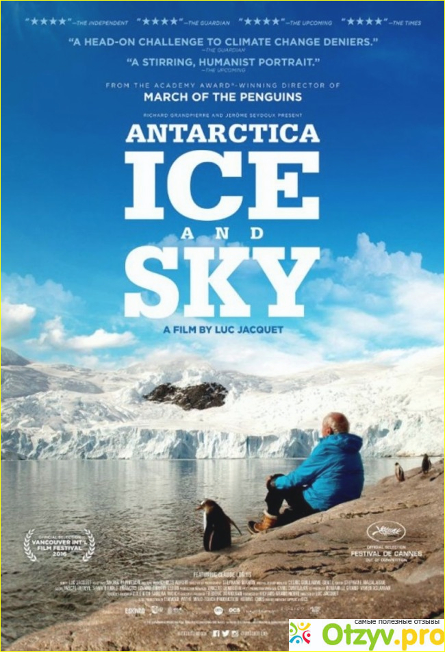 В данном случае хотелось бы отдельно выделить документальный фильм, некогда закрывший своим показом Каннский фестиваль в 2015 году. Это французский фильм от режиссера Люка Жаке о том, какое значение имеют антарктические льды для всей планеты, а значит - и для нас с вами. Фильм не только документальный, но и биографический. В нем мы встретимся с главным, по сути, героем (реальным человеком, ныне живущим), что посвятил свою жизнь разгадке этих кусков замерзшей воды, а также с не безызвестным Жаком Ивом Кусто (даже те люди, кто не являются любителями документалок, не могут не знать этого человека по многочисленным, если не фильмам, то передачам уж наверняка).