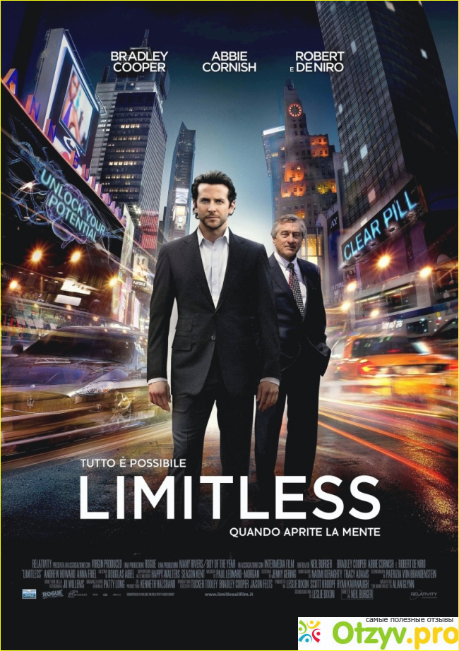 В один из дней он находит друга убитым, сделав обыск в апартаментах, находятся таблетки. За все, что он берется, то получается очень легко и непринужденно. Мозг работает очень хорошо, не позволяя при этом останавливаться ни себе, ни организму. В очень короткий временной промежуток, все узнают о новом гении и богаче. Параллельно с новыми изменениями налаживается личная жизнь главного героя, прежние чувства с бывшей подругой открываются в новом свете.