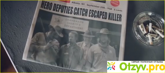 Короче, ему удалось сбежать. Потом начинаются самое смешные эпизоды. В одном провинциальном участке впервые за шесть лет звонят. Имею в виду контору шерифа. В этом маленьком городке ничего не происходит, а тут целое событие.