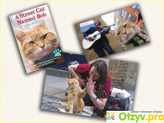 Вчера посмотрела этот фильм, снятый по книге «Уличный кот по имени Боб и как он спас мне жизнь». Джеймс Боуэн написал её на основе истории собственной жизни. Изначально он и не собирался ничего писать, был уличным бездомным музыкантом, зарабатывающим копейки на корку хлеба.