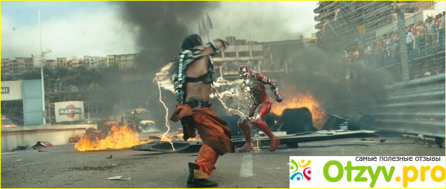 Сначала о хорошем: Микки Рурк. Этот 66-летний актёр великолепно сыграл Ивана Ванко - Хлыста, и полностью передал всю его харизму из комиксов. У него действительно есть свои мотивации ненавидеть семью Старков: в 80-ых Говард (отец Тони Старка) депортировал Ванко в СССР, и теперь антагонист жаждет кровавой мести! Звучит эпично, по сравнению с тухлым Джастином Хаммером. Это такой скучный и нелепый персонаж, что про него и говорить то тошно. Отсутствие харизмы, отсутствие мотивации, отсутствии логики действий в конце концов, всё это объединилось в самом скучном злодее Marvel.