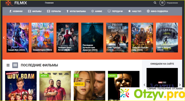 Filmix предлагает огромный выбор фильмов и сериалов разных жанров, стран и времен. Здесь можно найти как новинки, так и классические произведения. Мне нравится то, что сайт предоставляет контент с русским переводом, что очень удобно для тех, кто не владеет иностранными языками.