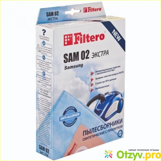 Пылесборники Filtero ЭКСТРА Anti-Allergen произведены из синтетического микроволокна MicroFib с антибактериальной пропиткой Anti-Bac. Очень прочные, они не боятся острых предметов и влаги, собирают больше пыли (до 50%) и обеспечивают уровень очистки воздуха 99,9%, а также задерживают бактерии и препятствуют их распространению. При этом мощность всасывания пылесоса сохраняется в течение всего периода службы пылесборника.