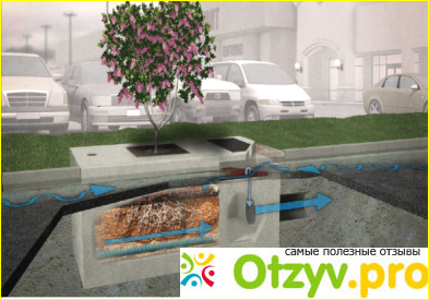 Ливневые стоки поступают в систему Filterra через бордюр - входное отверстие и проходят через специально разработанный фильтрующий материал смеси, содержащейся в ландшафтном конкретном контейнере. Фильтрующий материал захватывает и удерживает загрязняющие вещества; эти загрязняющие вещества затем разлагаются, улетучиваются и включаются в биомассу микро и макро фауны и флоры системы. Ливневые стоки текут через средства массового использования и в попадают систему в нижней части контейнера, откуда уже выходит очищенная вода.