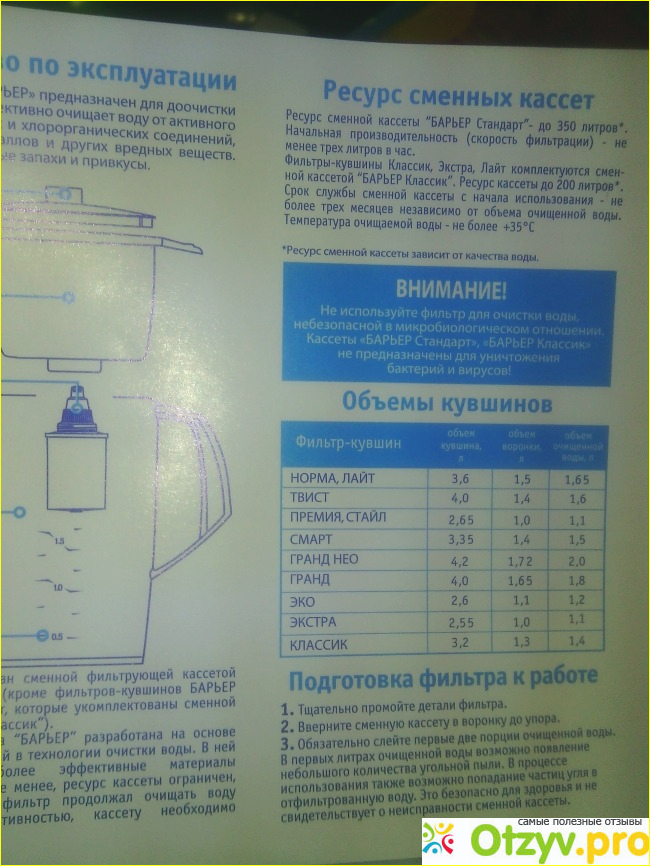 Хотя продается много различных видов Барьеров, мы выбрали недорогой "Стандарт". Его объем 3 литра.