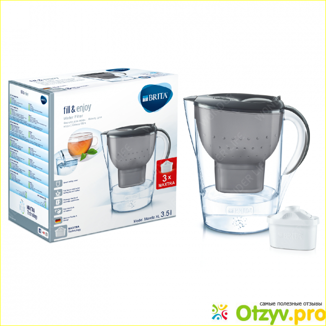 Зашел в ближайший торговый центр, присмотрел фильтр кувшин Брита, модели Marella XL. Не стал углубляться в характеристики этого фильтра, все равно в них ничего не понимаю. Зато обратил внимание на производителя. Им оказалась страна - Германия. Объем тоже нормальный показался. Купил, дома распаковал.