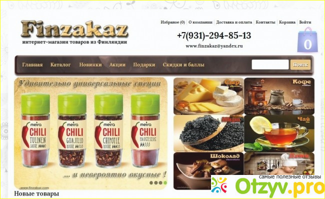 Как уже было сказано выше официальный сайт интернет магазина "Товары из Финляндии", находится по адресу www.finzakaz.net. Сайт имеет хороший дизайн и удобную навигацию. С левой стороны расположено навигационное меню, которое включает расширенный список товаров, разбитый по видам, а также информацию о доставке, оплате, скидках, о партнерской программе и что самое главное, о том как правильно оформить заказ. Также здесь есть ссылка на контакты и на Блог.