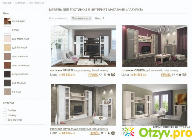Вот так, например, выглядит меню выбора мебели для гостиной. Вариантов и коллекций - очень много, даже названия все не перечислить.