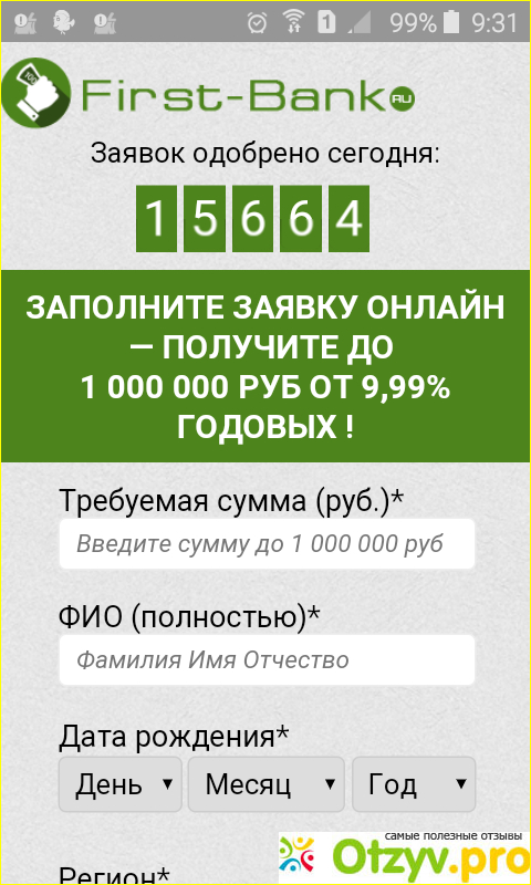В прошлом году в самый неподходящий момент сломался мой старенький ноутбук, поэтому решил поменять его на новый. А денег в наличии в тот момент не оказалось. После некоторых сомнений решил взять небольшой кредит, а времени и желания идти в банк не было. В интернете нашел сайт first-bank.ru. Попытался пробить его по отзывам - ноль! Проанализировал его по доступным в сети каналам и оставил заявку на получение кредита.