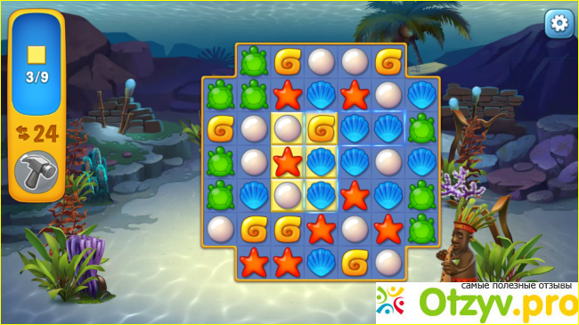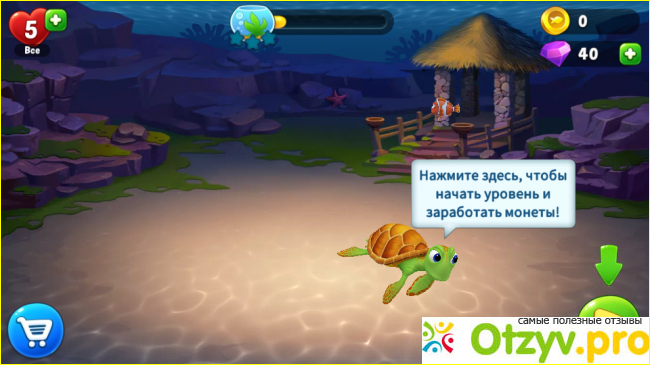 За каждый пройденный уровень вверху экрана с левой стороны будут начисляться монеты. На них можете также купить декор для аквариума, но он дорогой, поэтому чем больше будете выигрывать, тем больше откроете возможностей для украшения жилища и покупки новых рыб.