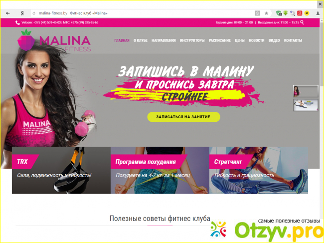 Из сильных сторон программы похудения по основе фитнес центра "Малина" так же можно выделить и то, что исходя из моих индивидуальных особенностей профессиональные тренеры и так же диетологи составляют мне план, потом пересылают и можно тренироваться по видео курсу, что очень удобно в домашних условиях.