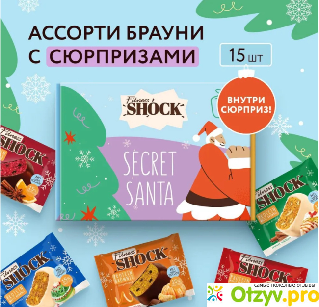 Всем привет! Я очень долго думала, что заказать своему молодому человеку в качестве подарка. Решила сделать различные боксы, а так как он у меня спортсмен заказала ему Новогодний бокс "Secret santa" от Фитнес Шок. В нем собрано протеиновое печенье, несколько разновидностей.