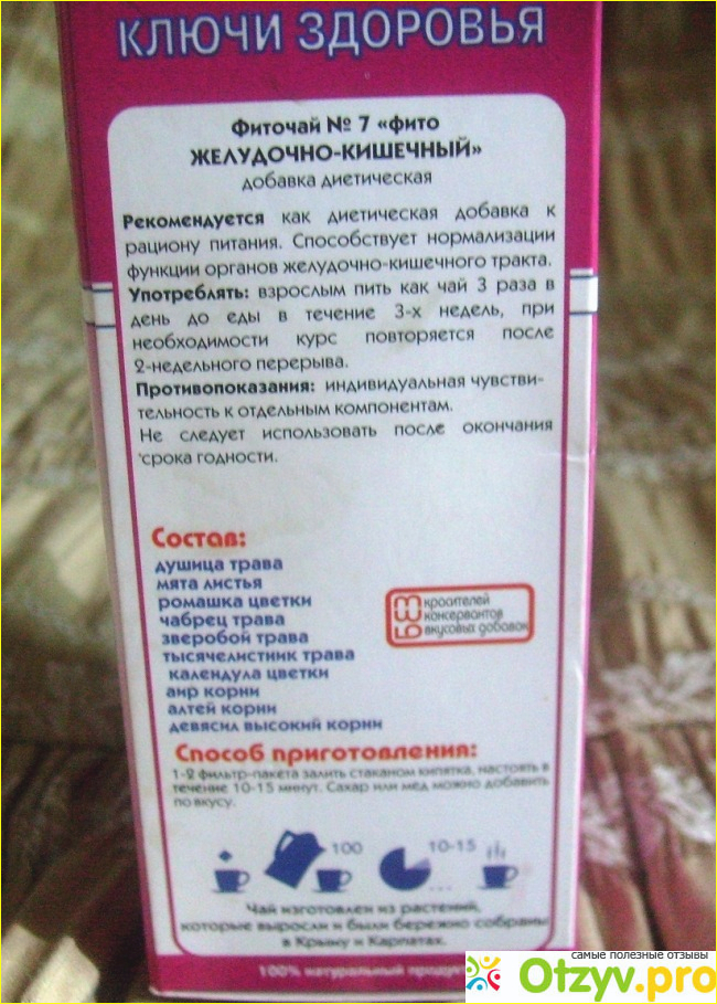 Вся продукция Ключи здоровья оформлена в симпатичные красочные упаковки, не исключение и фиточай №7 Желудочно-кишечный.