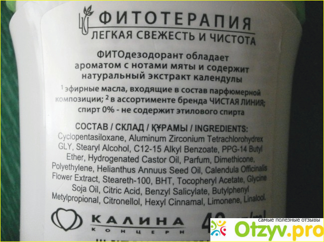 Фитодезодорант Чистая линия Легкая свежесть и чистота Мята и календула |