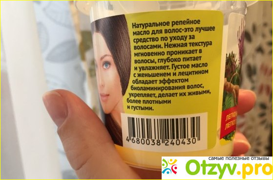 Далее о составе. Производитель уверяет нас, что масло выполнено полностью из натуральных ингредиентом, без применения силиконов и парабенов. Мое масло репейное с женьшенем и лецитином. Предназначено для использования всех типов волос. Еще есть информация, что масло идет с эффектом био-ламинирования.