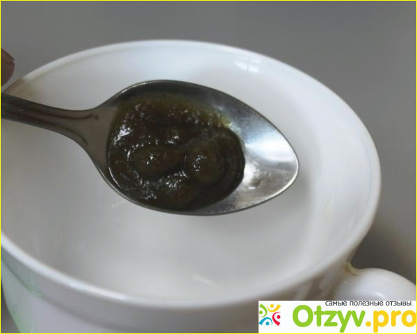 Паста имеет гелеобразную консистенцию и коричнево - зеленоватый оттенок.