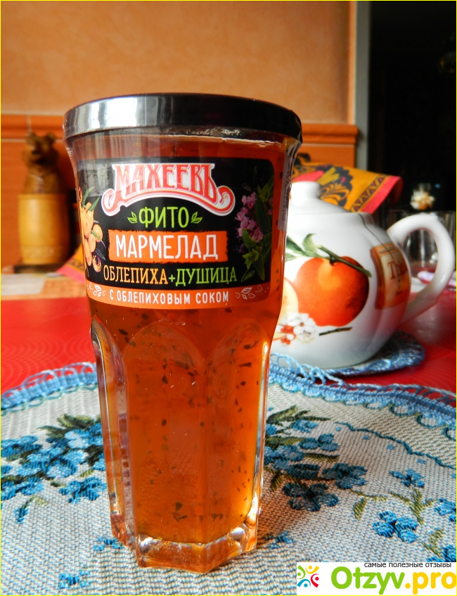 Этот фитомармелад "Облепиха+душица" с облепиховым соком в стеклянном стакане всего за 55 рублей я купила в магазине Фикс прайс.