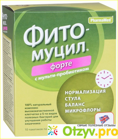 Что такое фитомуцил Форте. Это комплекс из Шелухи семян подорожника Псиллиум (содержит растворимую и нерастворимую клетчатку), пяти полезных бактерий для кишечника (пробиотик) и инулина (пребиотик). Средство абсорбирует токсины и выводит их вместе с калом, за счет чего с организма снимается интоксикация, проходит вялость, плохое самочувствие, тошнота и диарея.