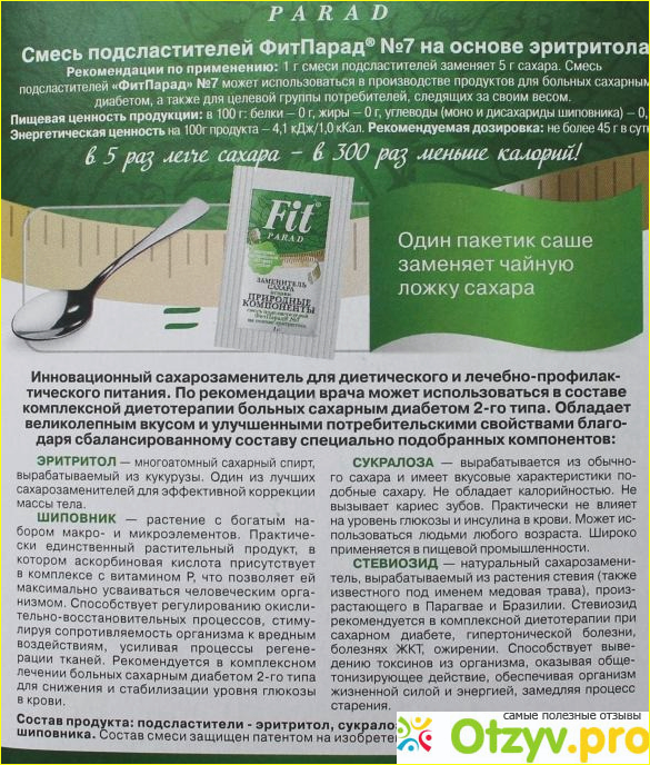 По вкусу фитпарад очень напоминает сахар, но не содержит калории.